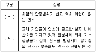 연소에 관한 설명이다. ( )에 들어갈 내용으로 옳은 것은?