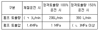 옥내소화전설비에서 옥내소화전 2개설치 시 최소유량은 260L/min 이다. 펌프성능시혐에서 다음 ( )에 들어갈 것으로 옳은 것은?