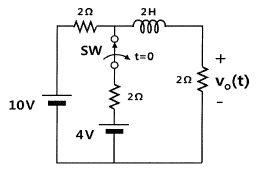 다음 회로에서 충분한 시간이 지난 다음 t=0 에서 스위치가 열린다면 t≥0에서 출력전압 Vo(t)(V)는?
