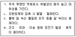 제4류 위험물 중 다이에틸에터(diethyl ether)에 관한 설명으로 옳지 않은 것을 모두 고른 것은?