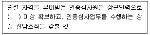 「농림축산식품부 소관 친환경농어업 육성 및 유기식품 등의 관리·지원에 관한 법률 시행규칙」상 인증기관 지정기준의 인력에 대한 내용으로 ( )에 알맞은 것은?