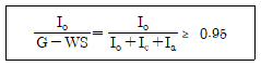 『친환경농축산물 및 유기식품 등의 인증에 관한 세부실시 요령』상 유기가공식물 중 유기원료 비율의 계산법이다. 다음 각 문자가 나타내는 것으로 틀린 것은? (단, G=Io+Ic+Ia+WS 이다.)