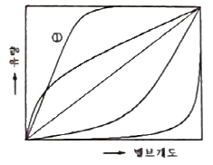 다음 그림은 제어밸브 고유 유량 특성에 대한 것이다. ①번 곡선에 해당되는 특성은?