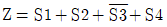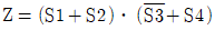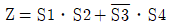 입력요소 S1, S2가 동시에 작동되던지, S3이 작동되지 않는 상태에서 S4가 작동되었을 때 출력이 발생되는 제어기의 논리식으로 옳은 것은?