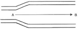 양 끝의 지름이 다른 관이 수평으로 놓여 있다.왼쪽에서 오른쪽으로 물이 정상류를 이루고 매초 2.8L의 물이 흐른다.B부분의 단면적이 20cm2 이라면 B부분에서 물의 속도는?