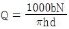 기름 펌프로 사용되는 기어 펌프의 송출량 계산식으로 옳은 것은? (단, Q는 송출량[ℓ/min], h는 이의 높이[cm], b는 이의 폭[cm], N은 회전수[rpm], d는 피치원지름[cm]이다.)