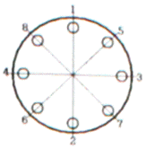 플랜지의 볼트(bolt) 조임 순서로 가장 적합한 것은?