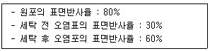 다음의 표면반사율로 계산된 세척률은?