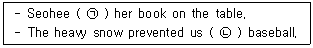 ㉠ laid, ㉡ from playing