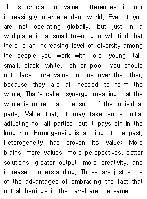 다름을 존중할 때 더 많은 상승효과가 발생한다.