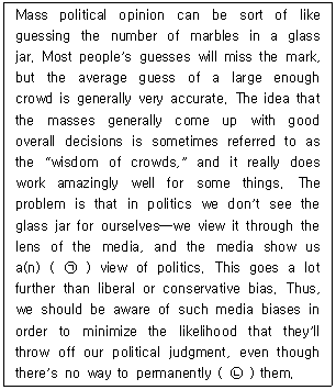 다음 빈칸 ㉠과 ㉡에 들어갈 말로 가장 적절한 것은?