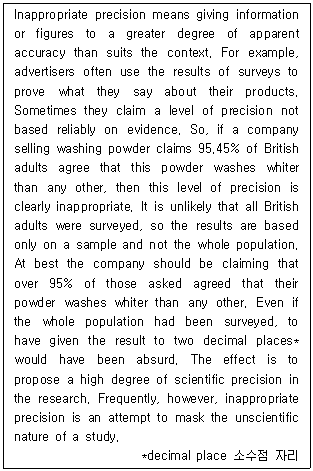 필요 이상으로 정밀한 정보를 제시하는 연구는 비과학적인 경우가 많다.