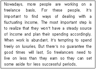 프리랜서는 자신의 수입에 비해 과도하게 지출하는 경향이 있다.