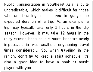 Timetables of public transportation in Southeast Asia are flexible during the dry season.