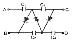 다음 그림과 같은 회로에서 AB 단자에 v=Vm sinωt[V]를 공급했을 때, AC 양단의 전압은?