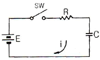 다음 그림에서 스위치 (SW)를 닫을 때의 충전전류 I(t) [A]는?