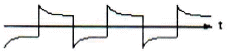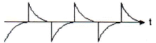아래의 그림과 같은 RC 적분회로의 입력에 펄스폭이 tw인 구형파를 인가했을 때 회로의 시정수(τ=RC)가 τ≫tw의 조건이 되면 출력파형은 아래의 보기 중 어떤 모양인가?