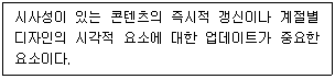 다음 글상자에서 설명하고 있는 웹사이트 디자인 관점의 특징으로 가장 올바른 것은?