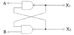그림의 회로에서 A=B=0이면 X1과 X2의 값은 각각 얼마인가?