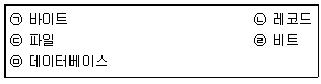 정보표현의 단위가 작은 것부터 큰 순으로 올바르게 나열된 것은?