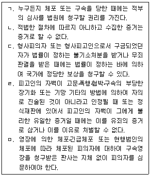 「대한민국헌법」에서 형사절차와 관련하여 명시적으로 규정하고 있는 것만을 모두 고르면?