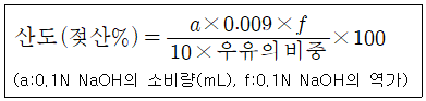 검체 10mL로 우유의 산도를 계산하는 다음 식에서 0.009의 의미는?