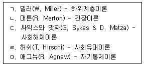 청소년비행의 이론과 학자를 바르게 연결한 것을 모두 고른 것은? (문제 오류로 실제 시험에서는 모두 정답처리 되었습니다. 여기서는 1번을 누르면 정답 처리 됩니다.)