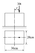다음과 같은 단주에서 편심거리 e에 P=30t이 작용할 때 단면에 인장력이 생기지 않기 위한 e의 한계는?