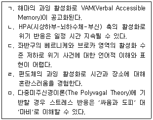 위기에 처한 내담자에 관한 신경 생리학적 설명으로 옳은 것을 모두 고른 것은?