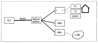 다음은 PON(Passive Optical Network)의 구성도로 괄호( ) 안에 들어갈 장치명은?