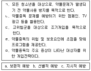 미국 의학연구소(IOM)의 청소년 중독 예방 분류체계에 관한 연결로 옳은 것은?