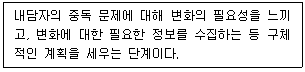 다음에서 설명하고 있는 프로차스카(J. Prochaska) 등의 초이론 모형의 단계는?