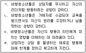 페라라(L. Ferrara)가 제안한 비행청소년의 집단상담에서 볼 수 있는 현상과 그에 대한 상담자의 대응으로 옳은 것을 모두 고른 것은?