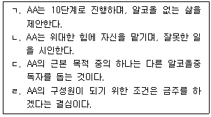 알코올중독자 모임(AA)에 관한 내용으로 옳은 것을 모두 고른 것은?