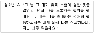 사이크스와 맞짜(G. Sykes & D. Matza)가 제시한 중화 기술(technique of neutralization) 중 다음 사례의 성폭력 가해 청소년 A가 사용하고 있는 기술은?