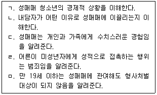 성매매 피해 청소년을 상담할 때 유의해야 할 사항으로 옳은 것을 모두 고른 것은?