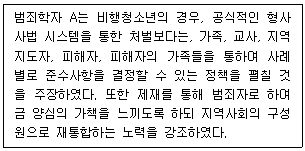 재통합적 수치심(Reintegrative Shaming)이론이 정책의 이론적 배경이다.
